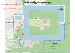 カンボジアでは9月21日-23日がプチュンベン(お盆)、9月24日が憲法記念日となりますので、この連休明けからの施行となる予定ですが、アンコールワットのお堀の南西の角の部分は車両は入れなくなります。